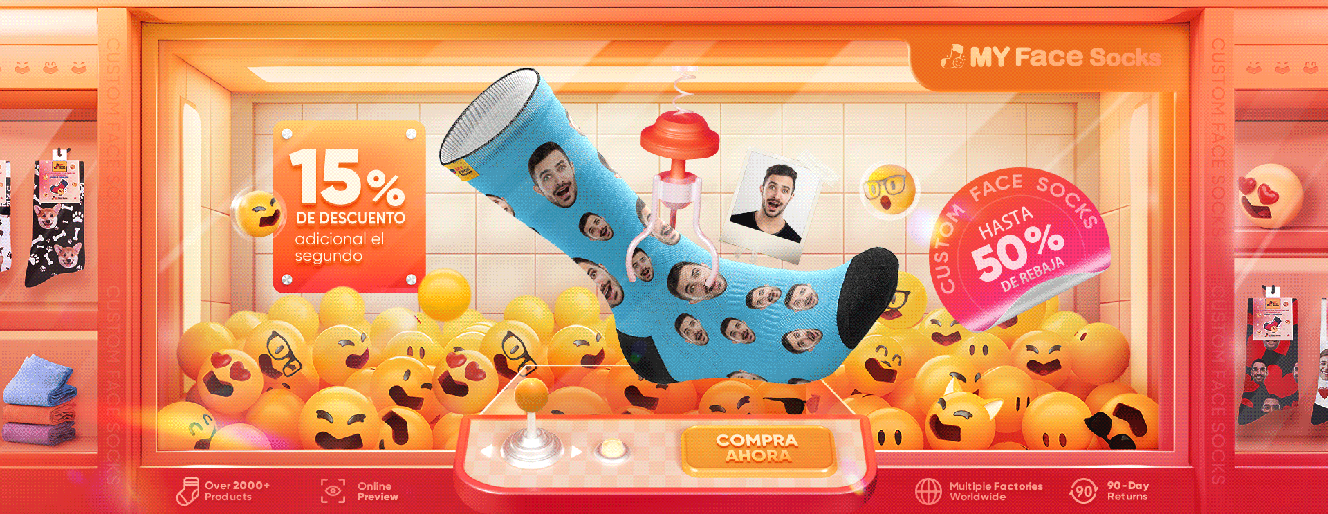 Calcetines De Compresión Facial Personalizados Calcetines Hasta La Rodilla Personalizados Con Foto De Corazón Regalo Para Él Y Ella35% product.price.off