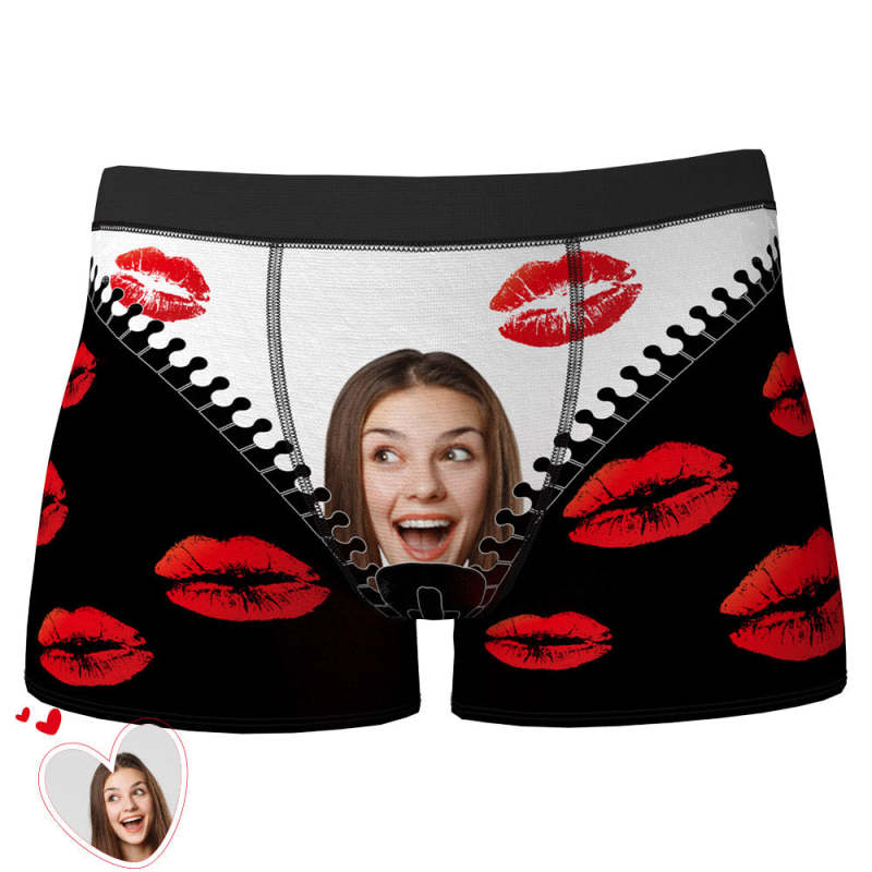 Cara Personalizada Boxer Ropa interior Para Hombres Regalos Para el Novio - Red Lip Brief