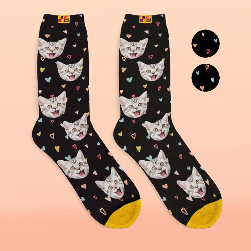 Calcetines Impresos Digitalmente En 3d Personalizados My Face Socks Agregue Imágenes Y Nombre - Corazones De Colores