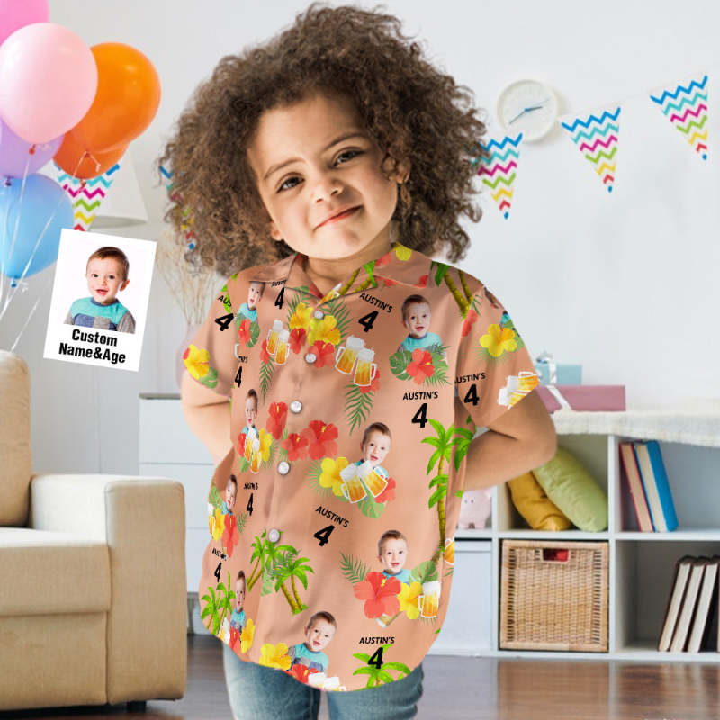 Edad Y Nombre Personalizados Niños Cara Camisa Hawaiana Cumpleaños Camisa Hawaiana Flor Roja Y Palmera Camisa