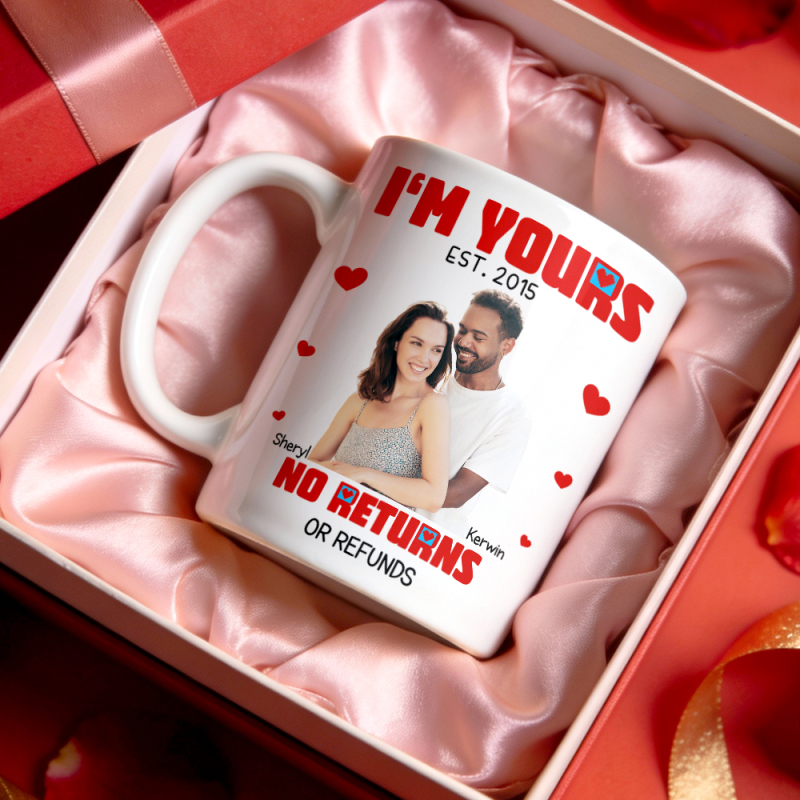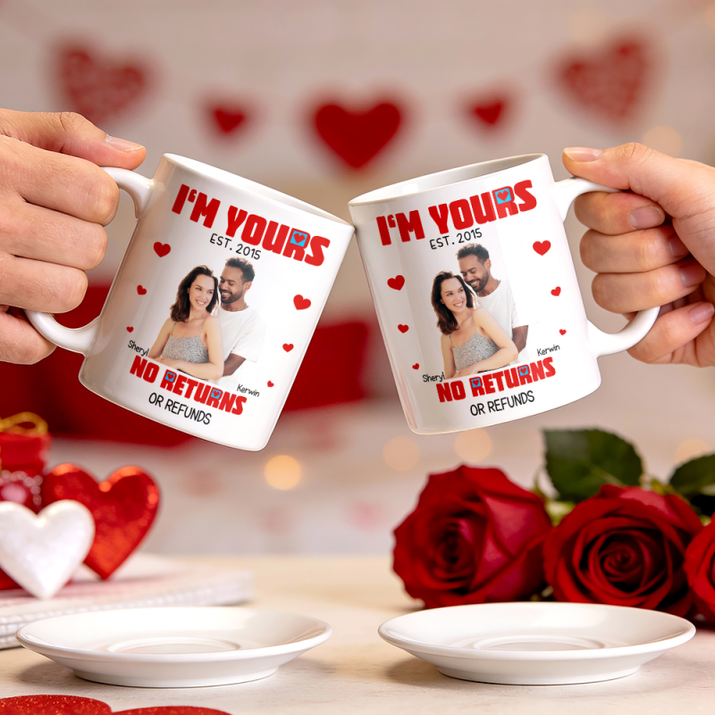 Taza Personalizada De Dibujos Animados Con Foto Y Nombre. Soy Tuyo. Sin Devoluciones Ni Reembolsos. Regalo De Aniversario De San Valentín.