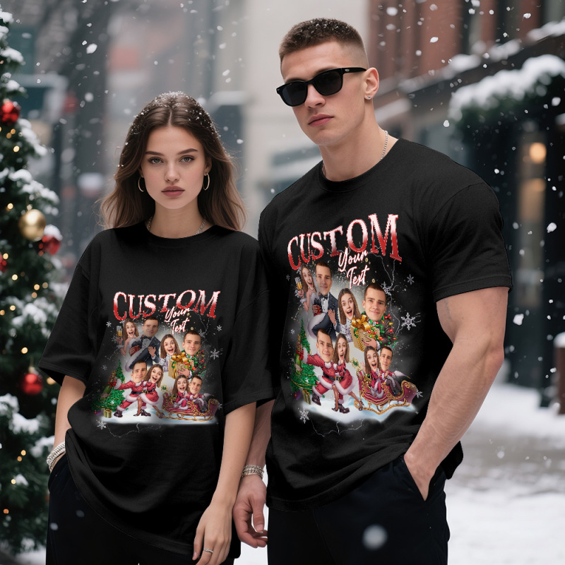 Camiseta Personalizada Con Retrato De Pareja, Camiseta Con Cara Personalizada, Regalo De Navidad A Juego Para Amantes