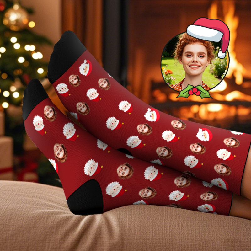 Calcetines De Papá Noel Personalizados Con Cara De Papá Noel, Regalo Para Familia, Pareja Y Niños.