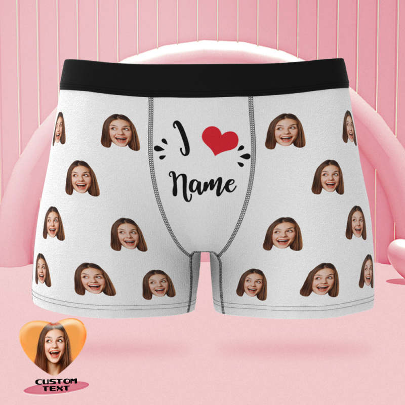 Calzoncillos Tipo Bóxer Con Cara Personalizada, Me Encanta El Nombre, Regalo De San Valentín Travieso Personalizado Para Él