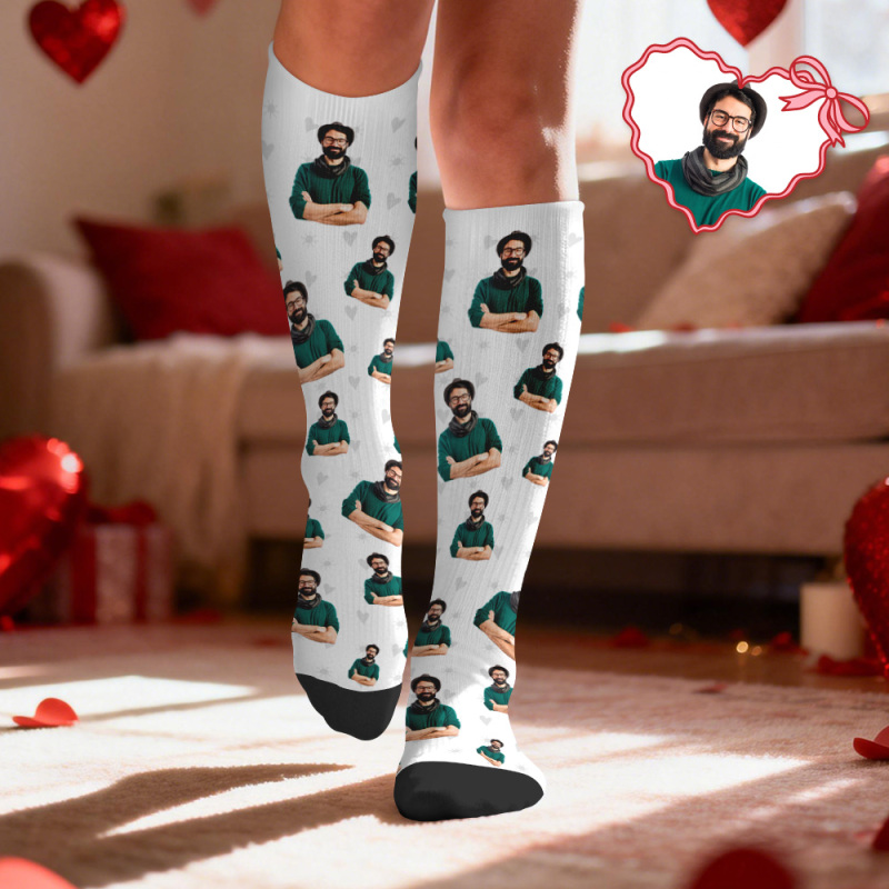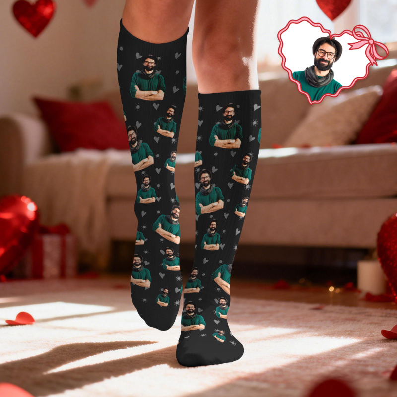 Calcetines De Compresión Facial Personalizados Calcetines Hasta La Rodilla Personalizados Con Foto De Corazón Regalo Para Él Y Ella