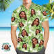 Camisa Hawaiana Con Cara Personalizada, Camisa Aloha Con Estampado Integral Para Hombre, Regalo - Hojas Verdes Frescas