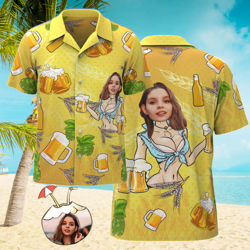 Camisa Hawaiana Con Cara Personalizada, Camisa Aloha Con Estampado Integral Para Hombre, Regalo: Niña Y Cerveza