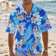 Camisa Hawaiana Con Cara Personalizada, Camisa Hawaiana Personalizada Con Flores Azules, Regalos Tropicales Para Fiestas.