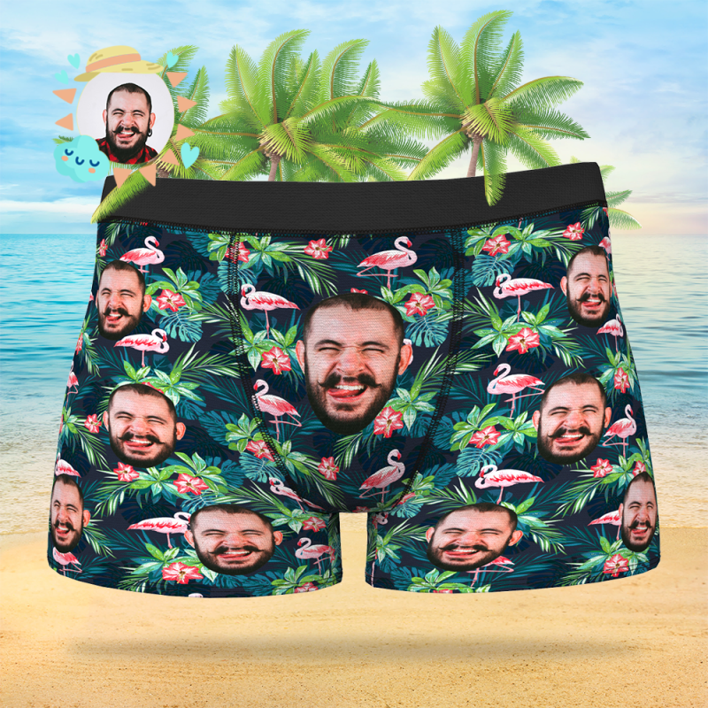 Calzoncillos Tipo Bóxer Personalizados Con Foto, Regalos Para Hombres - Hojas y Flamencos