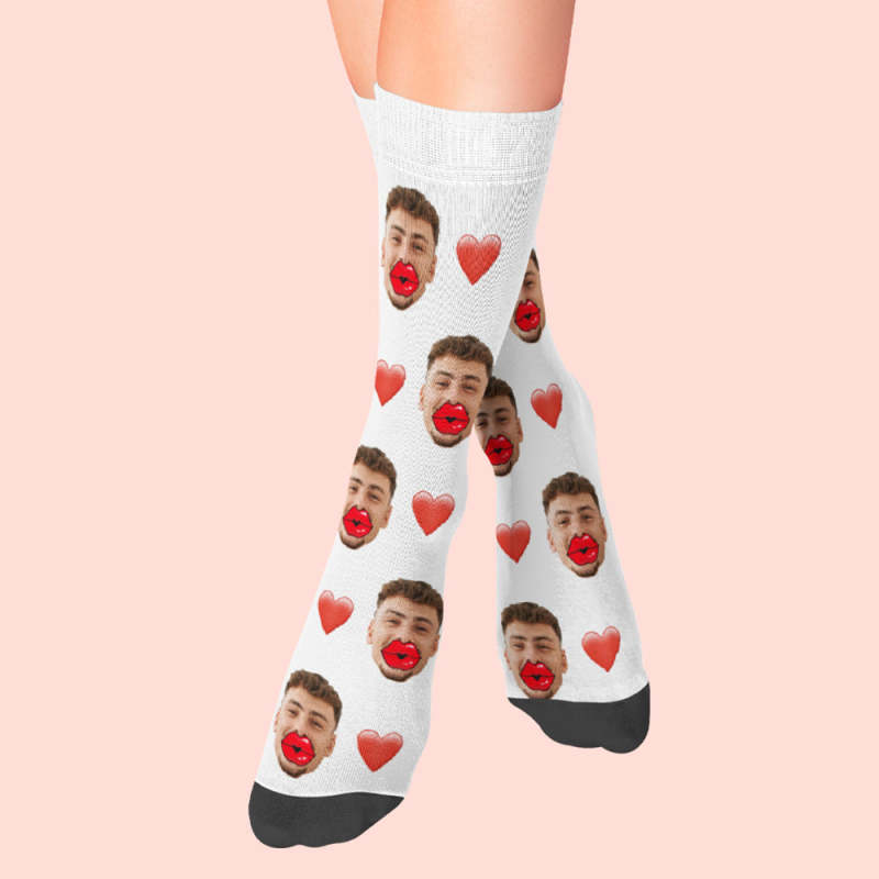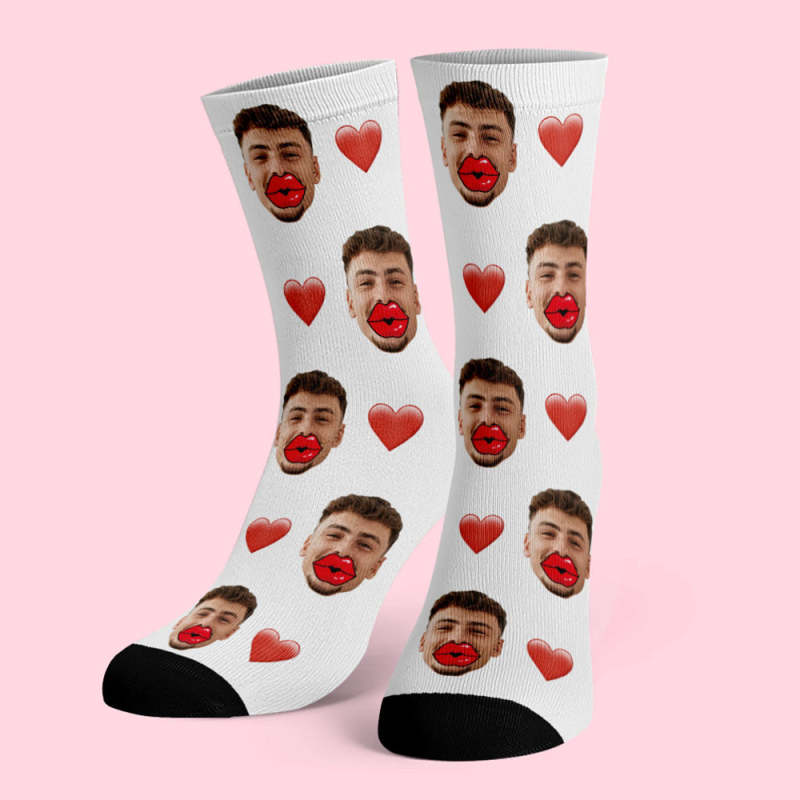Calcetines De Cara Personalizados Calcetines De Corazón Y Labios Rojos Regalo De San Valentín
