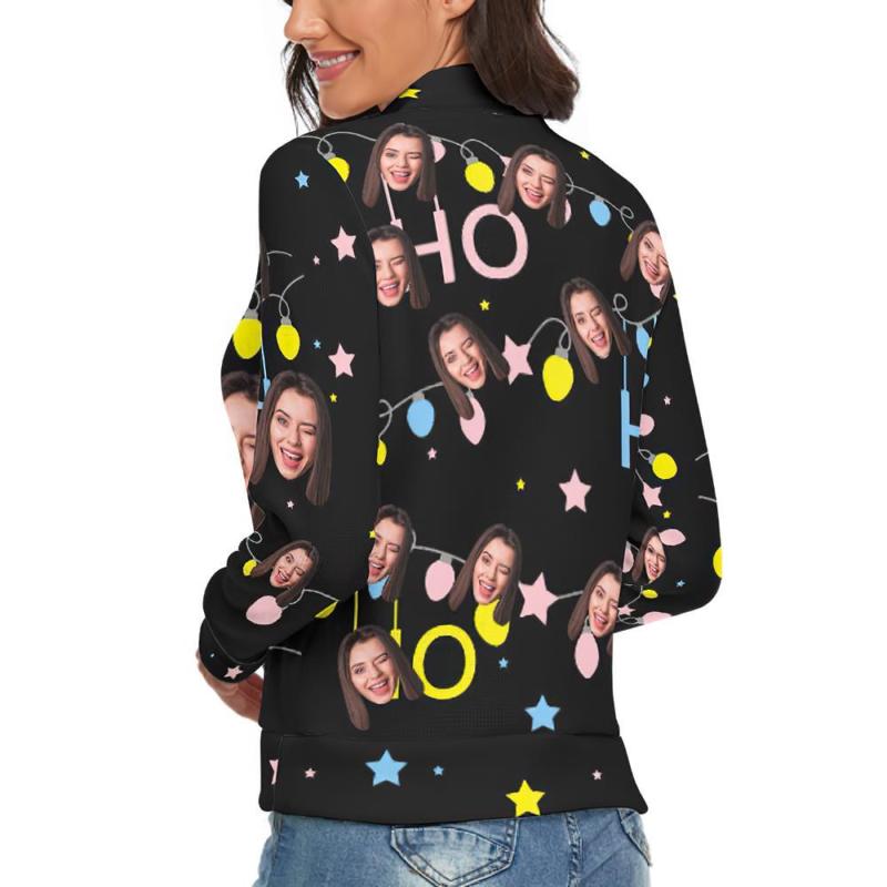 Jersey De Cuello Alto Con Cara Personalizada Para Mujer Suéter De Navidad Feo Suéteres Sueltos De Punto - Luces De Navidad