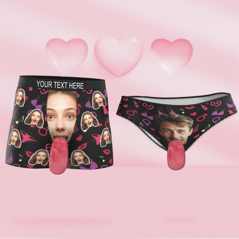 Eleva la intimidad y la risa en tu relación con nuestra ropa interior facial personalizada con un diseño de lengua magnética. Es una expresión de amor única y divertida durante la temporada festiva.