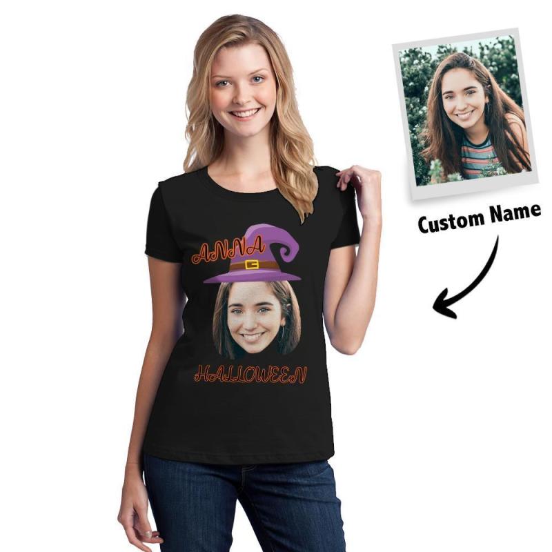 Camiseta Personalizada de Halloween de Foto Personalizada Camiseta Sombrero de Bruja
