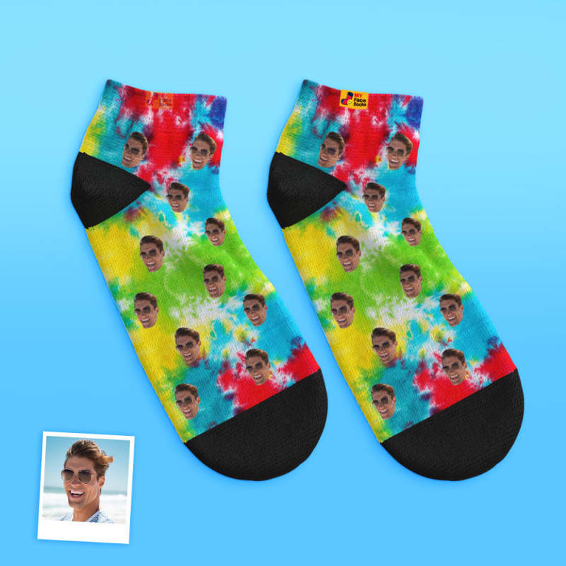 Calcetines De Tobillo De Corte Bajo Personalizados Calcetines De Cara Personalizados Teñido Anudado Divertido