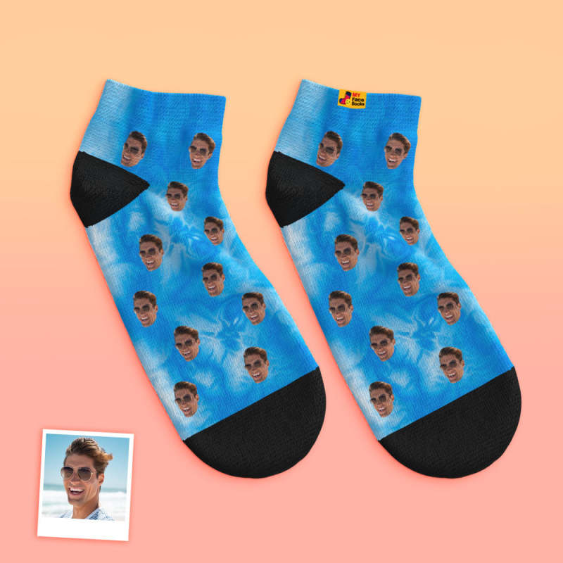 Calcetines Tobilleros De Corte Bajo Personalizados Calcetines De Cara Personalizados Tie Dye Blue