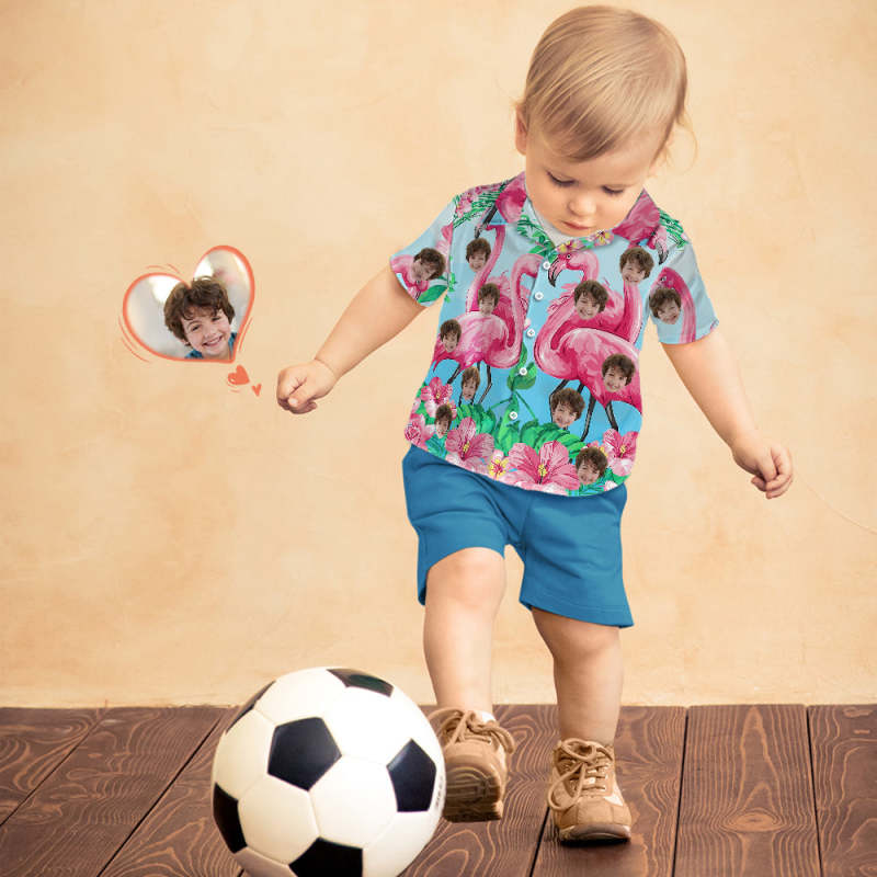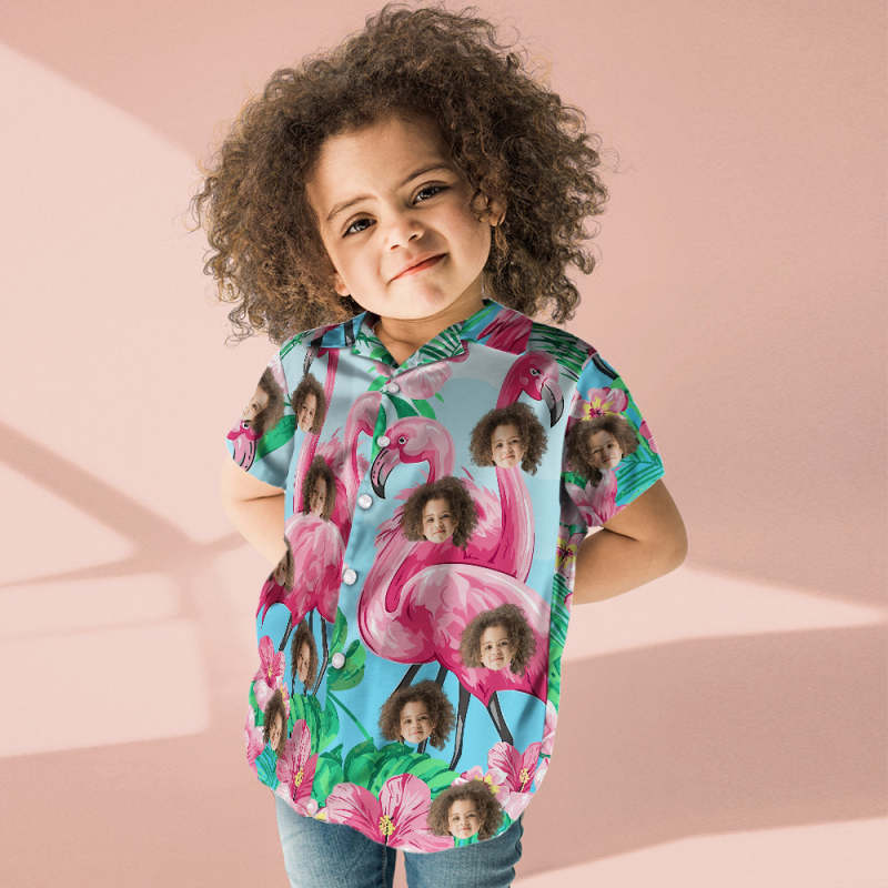 Foto Personalizada Camisa Hawaiana Traje De Pareja Padre-niño Usa Cara Camisa Hawaiana Regalo Flamenco