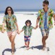 Pon tu foto en una camisa hawaiana con foto personalizada que visten padres e hijos.