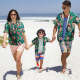 Pon tu foto en una camisa hawaiana con foto personalizada que visten padres e hijos.