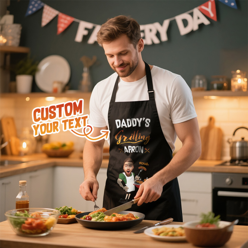 Delantal Personalizado Con Foto Personalizada Para Papá, Abuelo Y Familia.