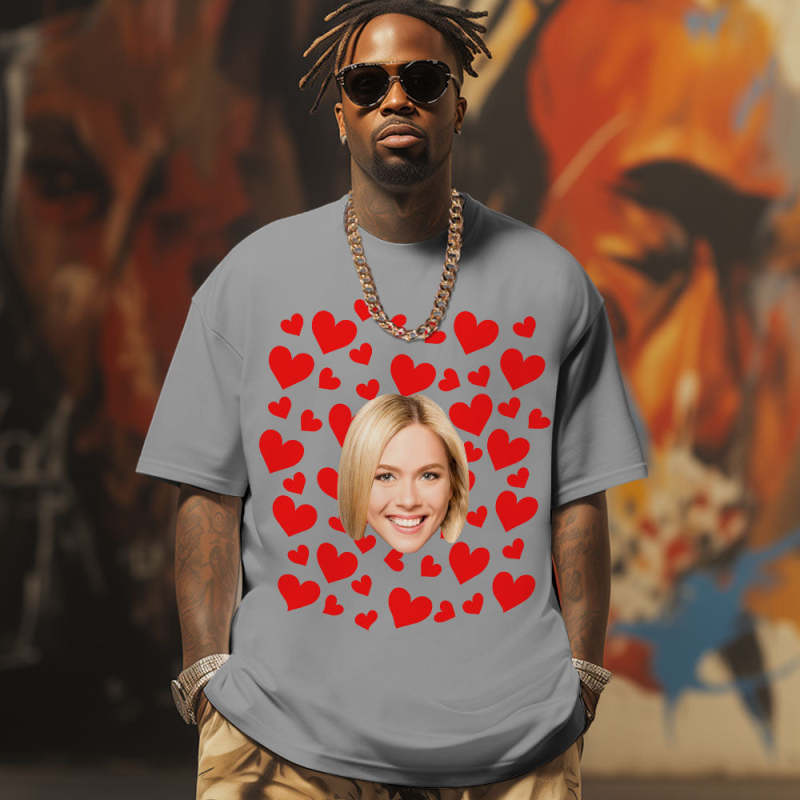 Camiseta Vintage Con Foto Personalizada, Camiseta Personalizada Para Parejas, Corazones Rojos, Regalos Del Día De San Valentín Para Hombres