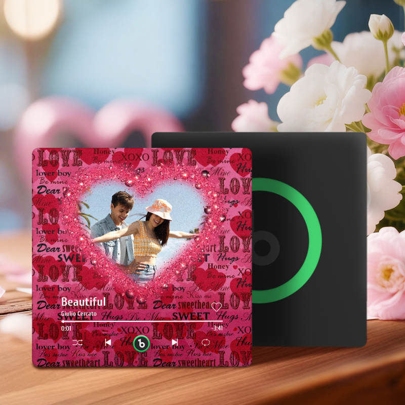 Imán Para Nevera Con Foto Personalizada Y Corazón Rojo Con Música. Regalo De San Valentín Para Ella.