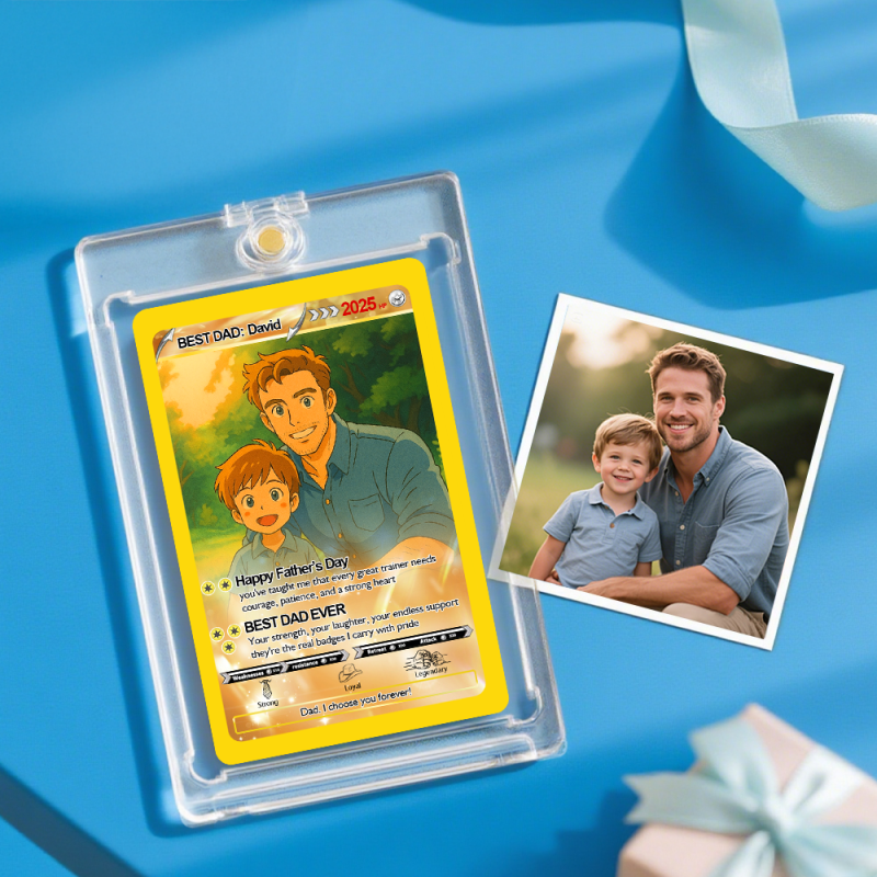 Tarjeta De Poke Personalizada Para El Día Del Padre, Tarjeta De Corbata Con Texto Personalizado Y Foto, Regalo De Tarjeta De Pokémon Para Papá, Regalo De Poke