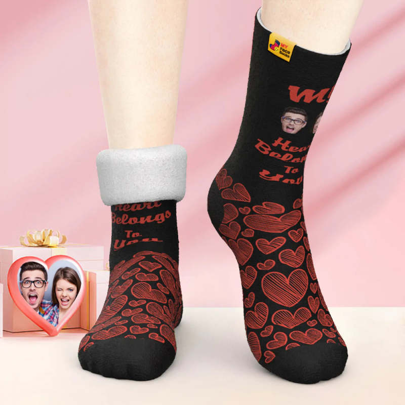 Calcetines Gruesos Personalizados Para Fotos Regalo De San Valentín Calcetines Cálidos Mi Corazón Te Pertenece Calcetines Faciales
