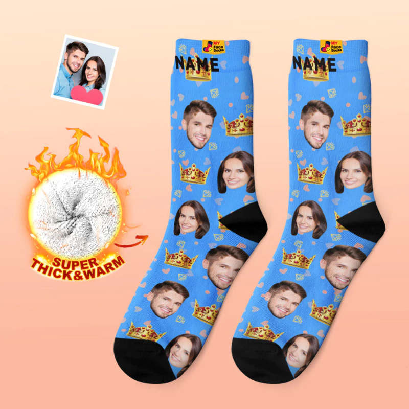 Calcetines Gruesos Personalizados Con Foto, Regalo De San Valentín, Calcetines Cálidos, Calcetines Con Cara De Reina