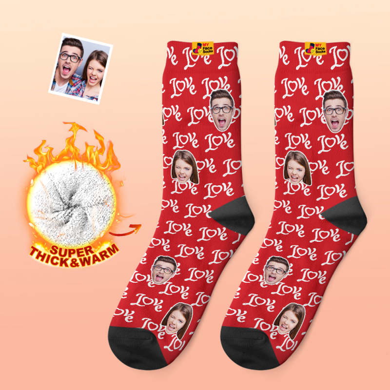 Calcetines Gruesos Personalizados Con Foto Regalos De San Valentín Calcetines Cálidos Muestre Sus Calcetines De Cara De Amor