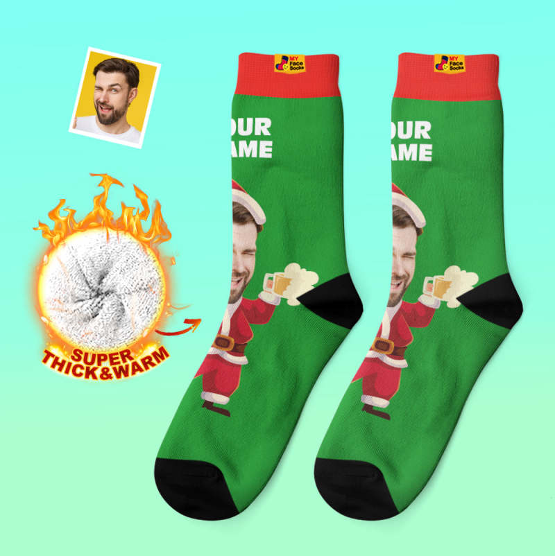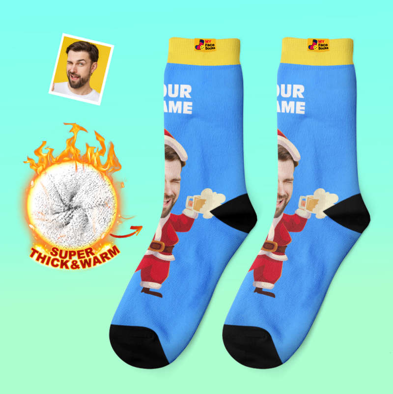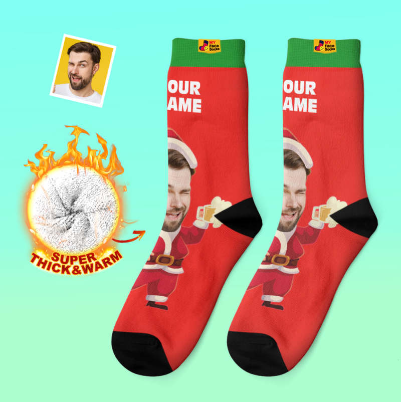 Calcetines Gruesos Personalizados Foto 3d Calcetines Impresos Digitales Otoño Invierno Calcetines Cálidos Cara Feliz Calcetines Regalo De Navidad