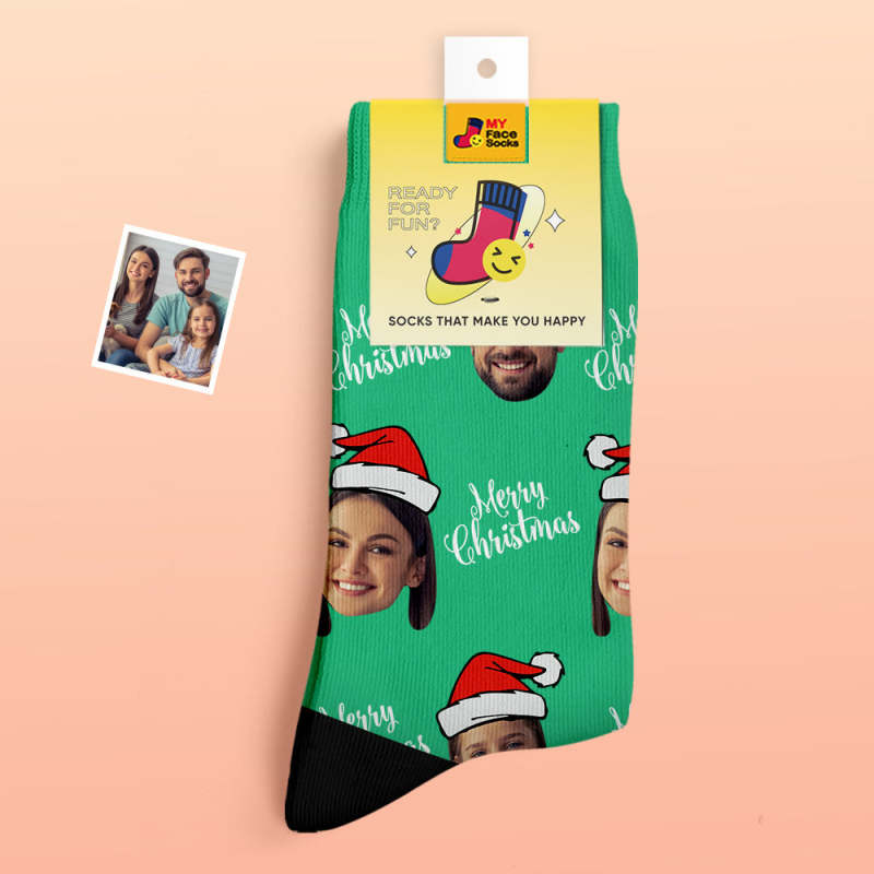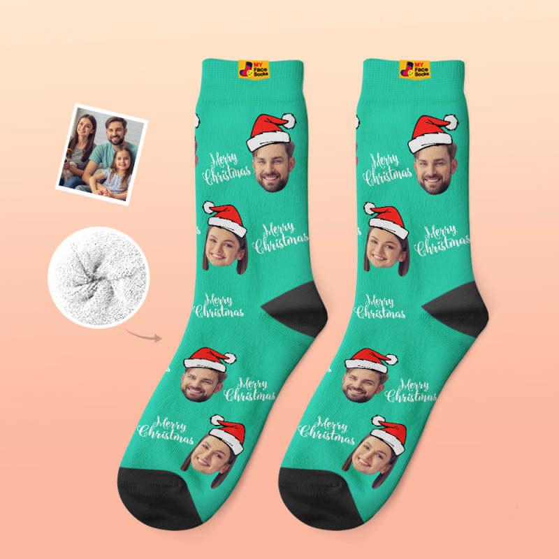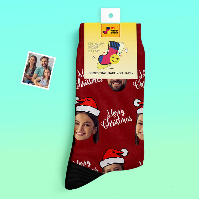 Calcetines Gruesos Personalizados Foto 3d Calcetines Impresos Digitales Otoño Invierno Calcetines Cálidos Feliz Navidad