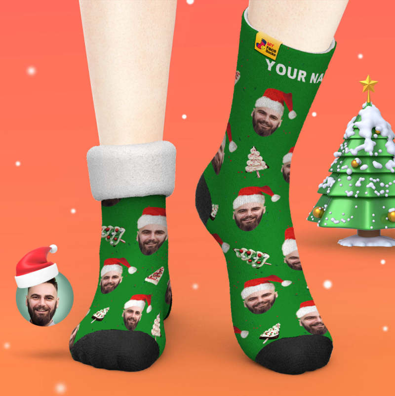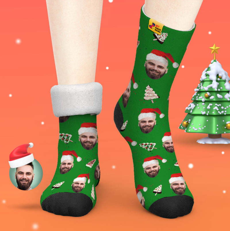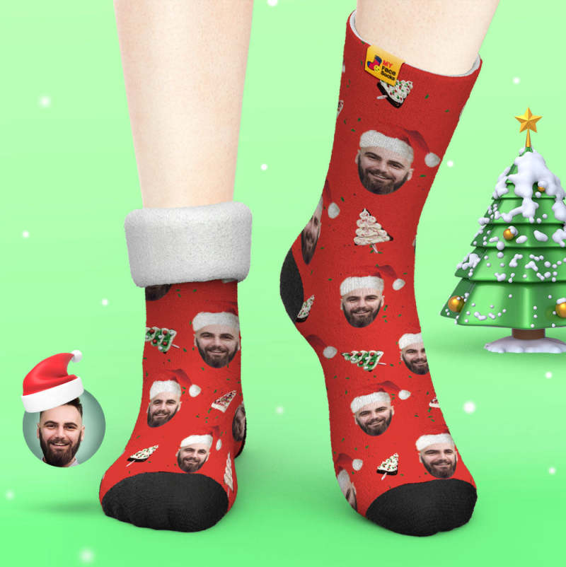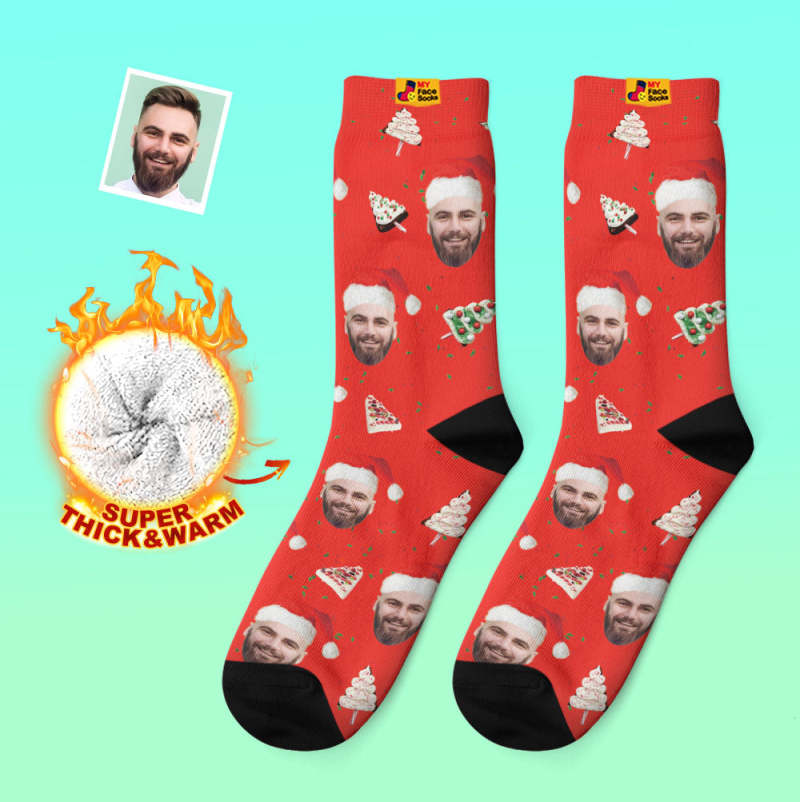 Calcetines Gruesos Personalizados Foto Otoño Invierno Calcetines Cálidos Calcetines De Pastel De Navidad Feliz Navidad