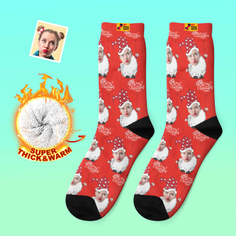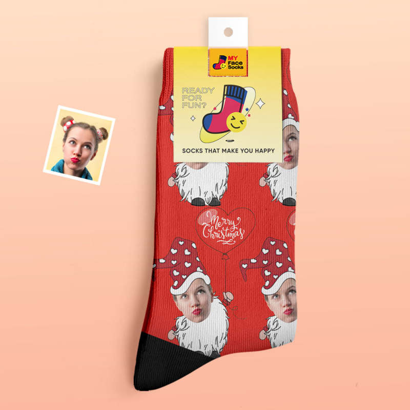 Calcetines Gruesos Personalizados Foto Otoño Invierno Calcetines Cálidos Gnomo De Navidad Con Globo En Forma De Corazón Calcetines De Navidad