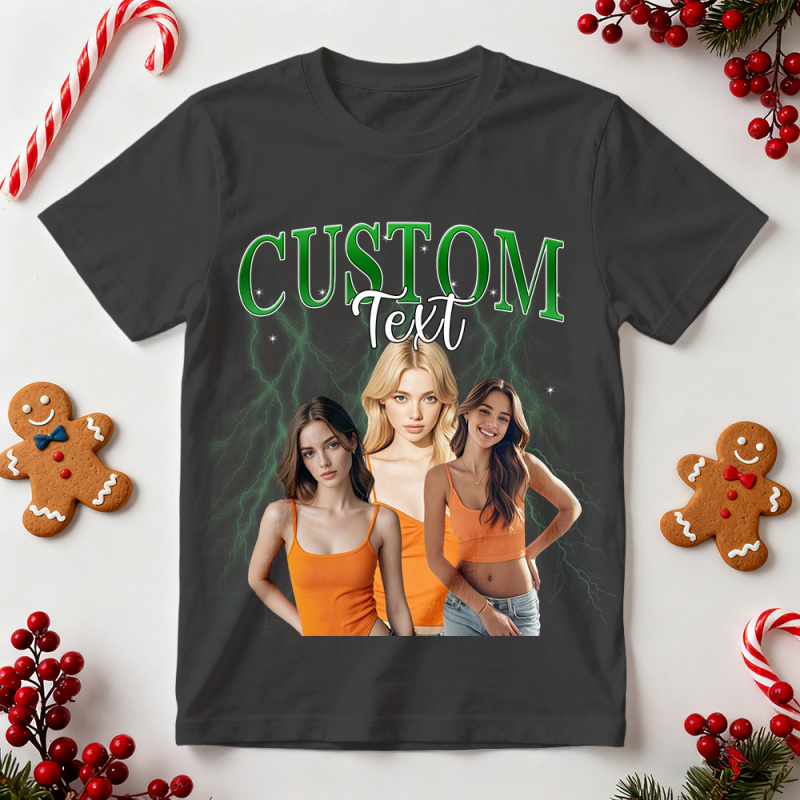 Camiseta Navideña Personalizada Con Foto Vintage Y Nombre. Regalo Único Para Parejas, Familiares O Amigos.