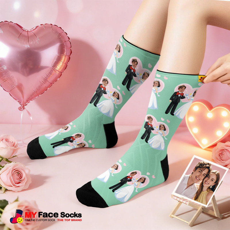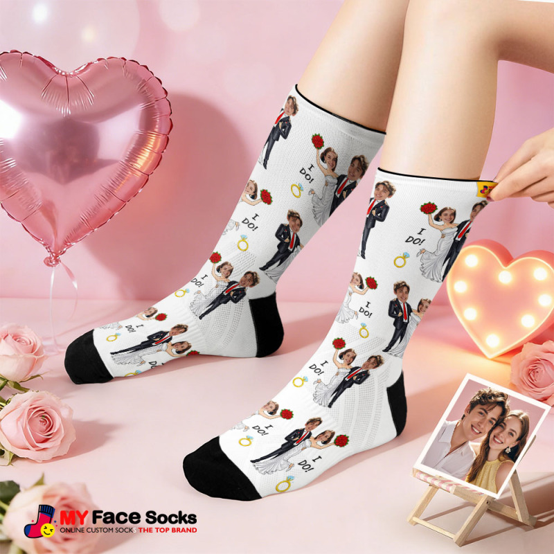 Calcetines Negros Con Temática De Boda Personalizada, Calcetines Personalizados Con Nombre De Pareja Para San Valentín Con Foto, Bonito Regalo Para Pareja