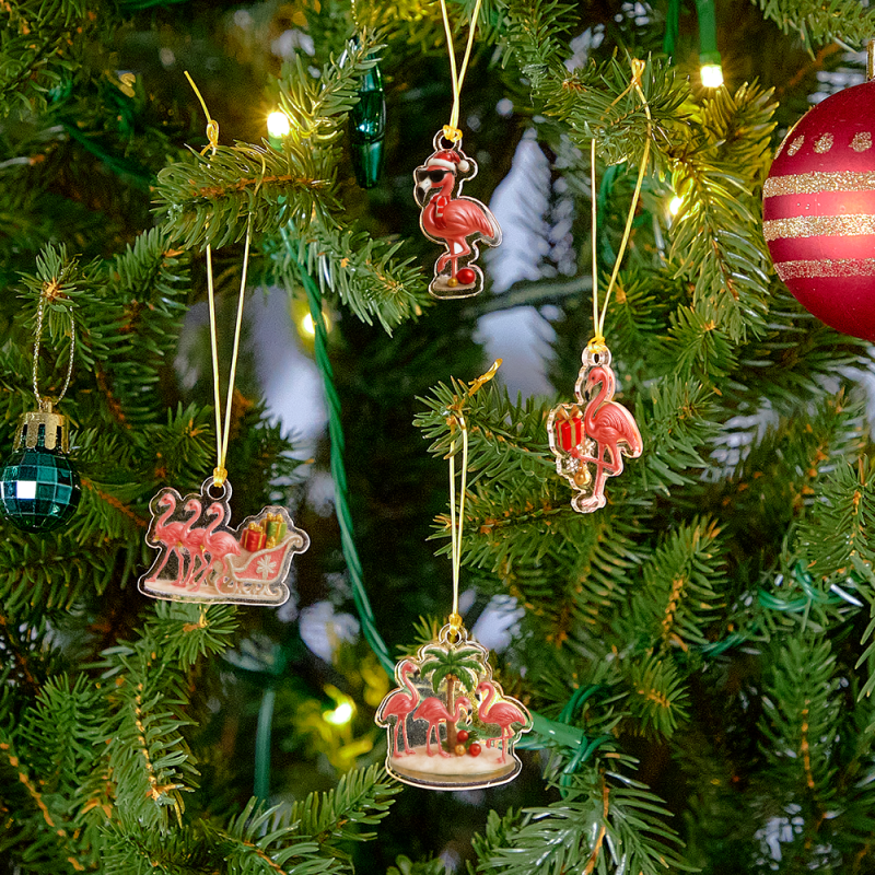 Diseño único de flamencos: Un vibrante estilo tropical rosa que destaca en cualquier decoración navideña.