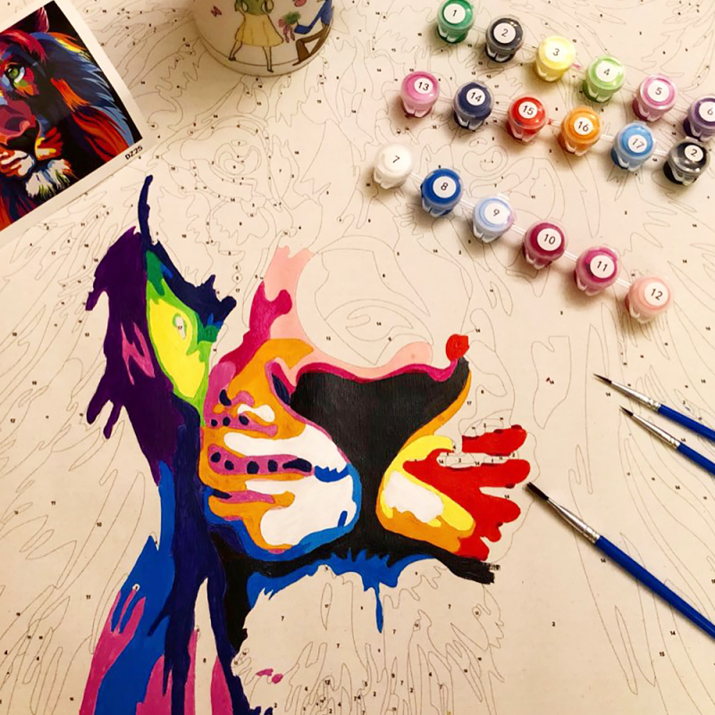 • Números marcados claramente con un cuadro de pintura en el lienzo, fáciles de seguir.