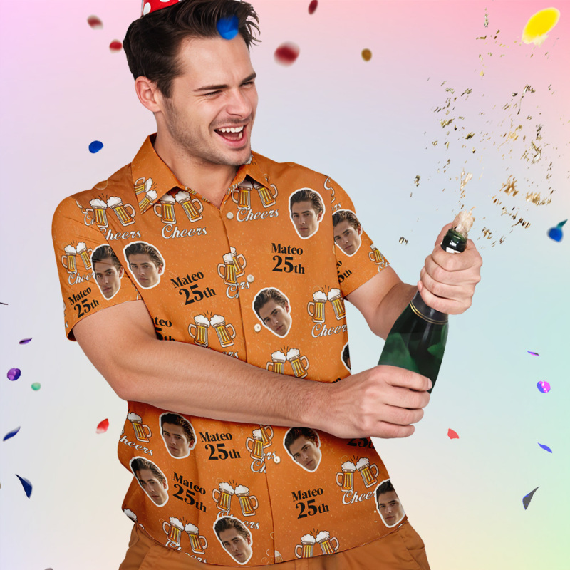 Camisa Hawaiana De Cumpleaños Personalizada, Nombre De Cara Personalizado, Camisa De Fiesta De Cumpleaños De Verano, Camisa De Cerveza, Camisa Hawaiana De Cumpleaños Aloha, Regalo De Cumpleaños