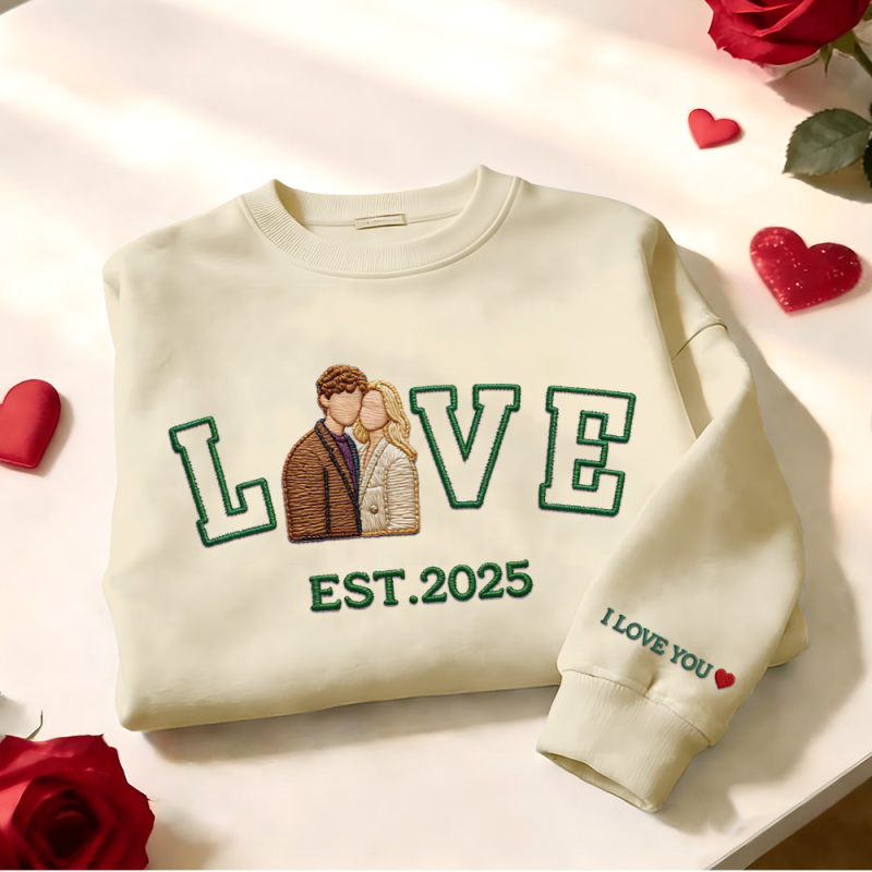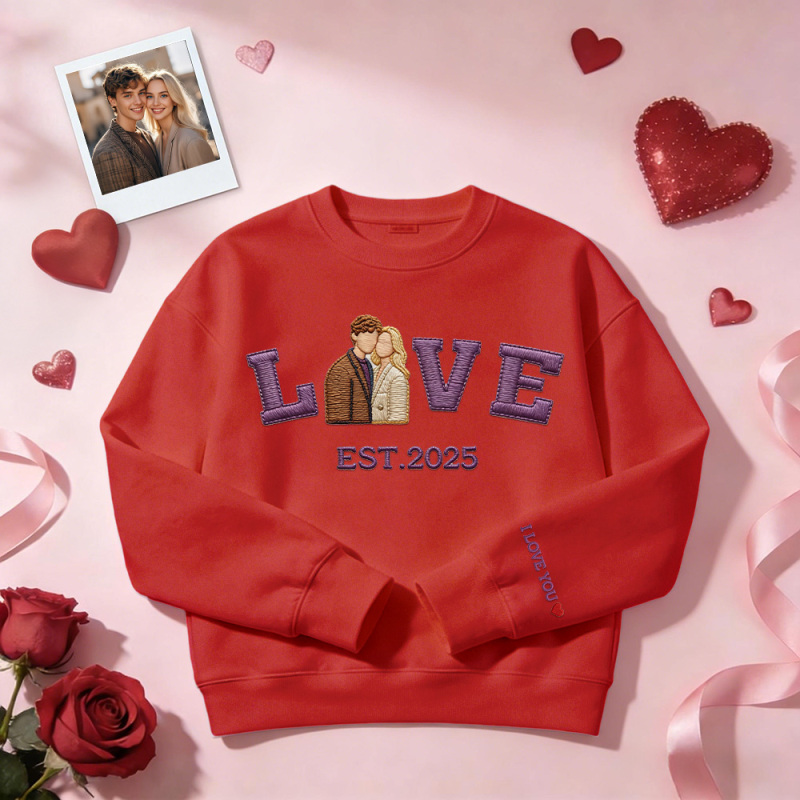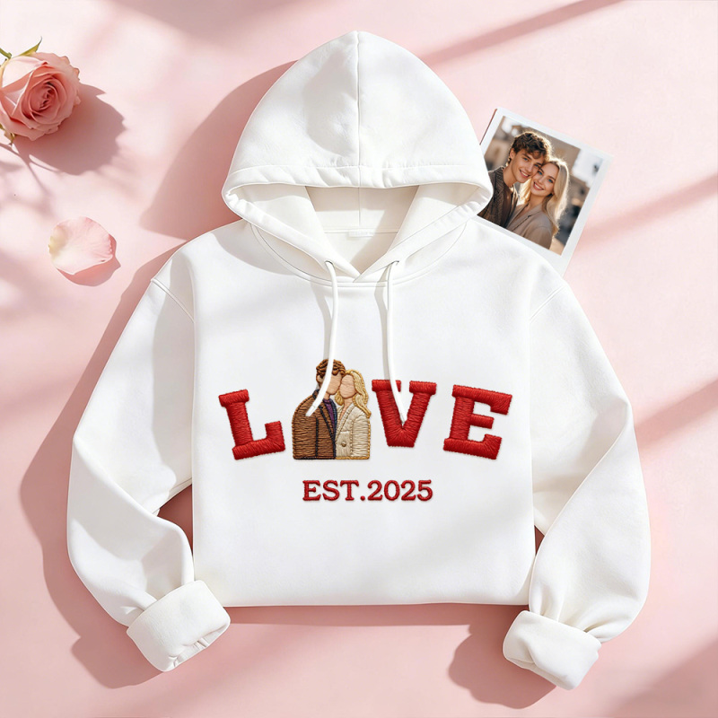 Sudadera Con Capucha Personalizada Con Foto Bordada De Pareja Love Est Year