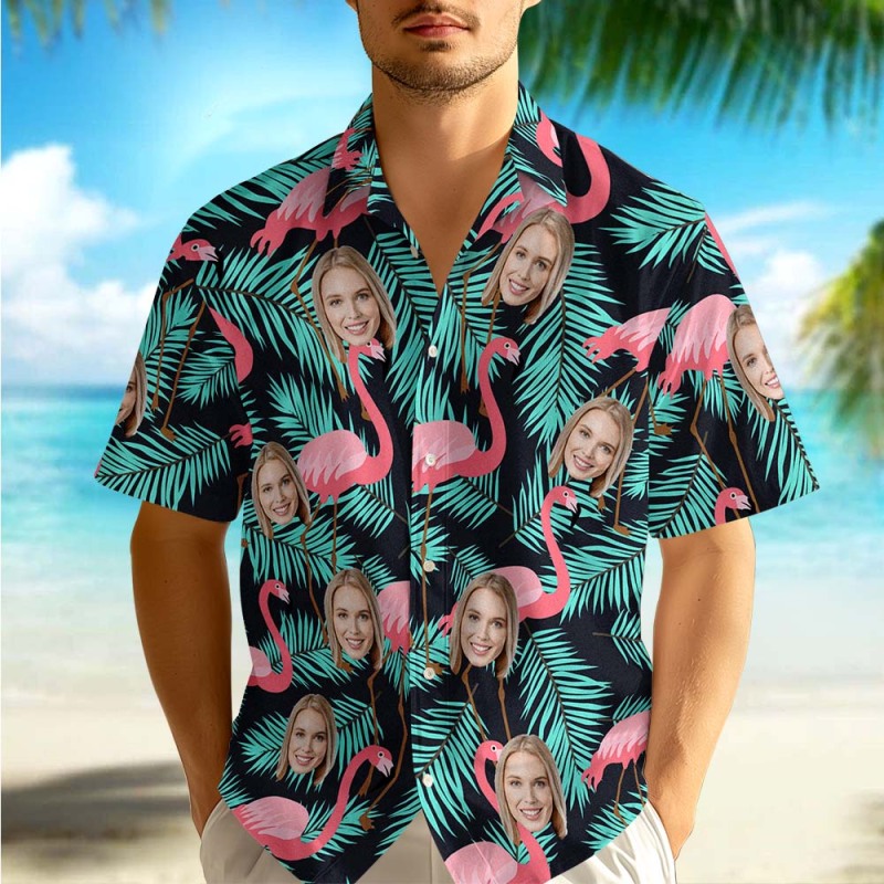 Camisa Hawaiana Personalizada Con Foto De Flamenco, Estampado Tropical, Ideal Como Regalo De Verano.