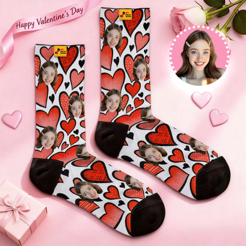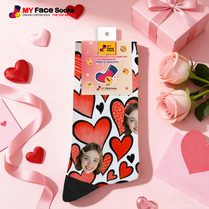 Calcetines Personalizados Con Forma De Corazón Rojo, Calcetines Con Temática De San Valentín, Calcetines Con Cara Personalizada, Regalo Para Pareja