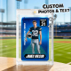 Crea un recuerdo único con esta tarjeta fotográfica deportiva personalizada, con la foto, el nombre, el número y las estadísticas de tu hijo/a. Perfecta para jóvenes atletas, equipos y aficionados al deporte, esta tarjeta con retrato estilo entrenador es un regalo divertido e inolvidable para cumpleaños, premios de temporada y celebraciones de equipo. Ideal para cualquier deporte, incluyendo fútbol, ​​baloncesto, béisbol y más.