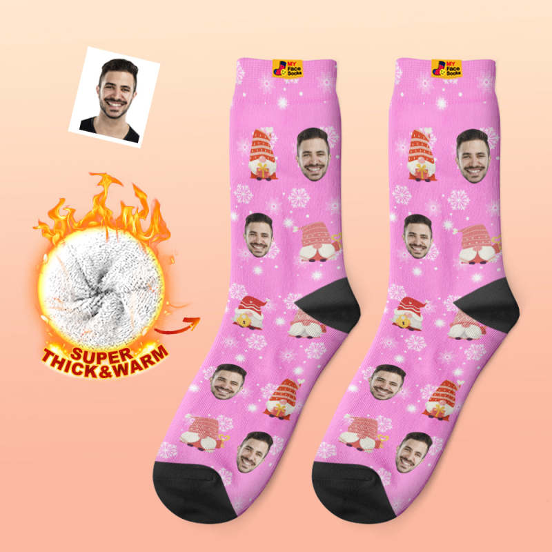 Calcetines Gruesos Personalizados De Navidad Rosa, Calcetines Con Estampado Digital 3d De Fotos, Calcetines Cálidos Para Otoño E Invierno, Regalo Bonito